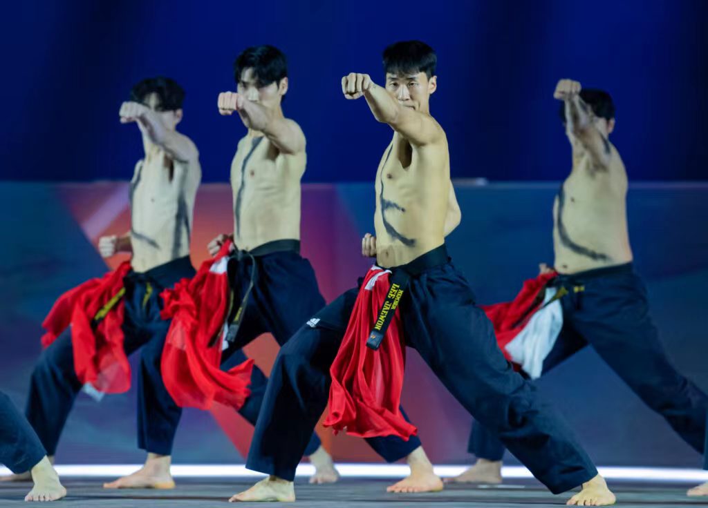 △ 武搏会选手在pg电子麻将胡了2武术场地器材上的